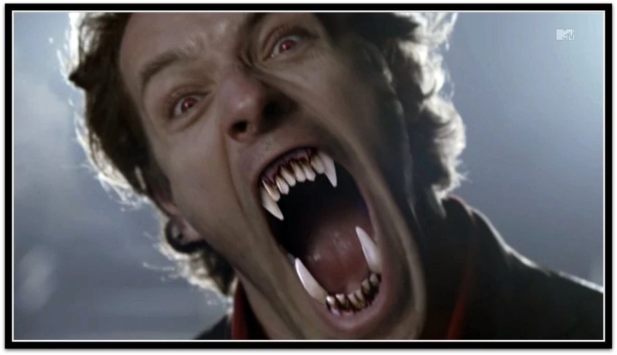 Then he starts to change. He's always red eyed and fanged and clawed, always has that hair along his face, but now he really changes. He twists, like he's cracking his neck, except his face shifts and pulls, his jaw extends grotesquely, and all his teeth sharpen and grow. Fur grows down his neck, over his hands, and soon he's more beast than boy.